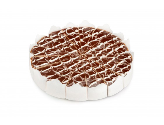 Ciocolată și caramelă. Combinația dintre pandișpane clasice și pandișpane de ciocolată, înmuiate cu cremă de frișcă cu cacao și lapte condensat caramelizat.